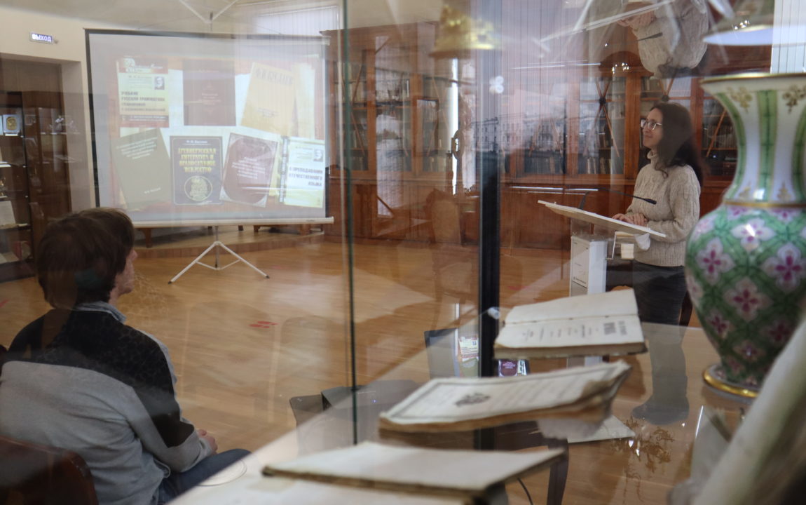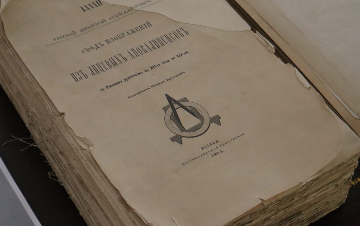 Особый интерес представляет фундаментальный труд Ф.И. Буслаева «Русский лицевой Апокалипсис. Свод изображений из лицевых Апокалипсисов по русским рукописям с XVI по XIX вв» (т. 1-2, 1884). Один из экземпляров этого уникального издания представлен в экспозиции Литературного музея. На лекции ему было уделено большое внимание. В своей работе учёный тщательным образом исследует и сличает несколько десятков списков лицевых Апокалипсисов, которые хранились в его библиотеке, в библиотеках КДА, МДА, СПбДА, а также в монастырях и частных коллекциях.