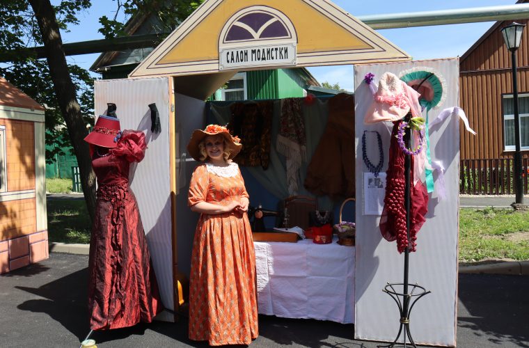 Посетителей встречали прекрасные пары, словно прибывшие из эпохи “уездного города XIX века”. Здесь же разместились разнообразные лавки – и мастерская модистки с изысканными украшениями, лентами и шляпками, и травница с освежающими напитками, и аптекарский домик с загадочными лекарственными пузырьками. Между тем, гости “Белинской весны” успели заглянуть и к талантливому повару, чтобы отведать одно из любимейших блюд семьи Белынских – кашу, которая вкуснее “любых пирожных….”.
