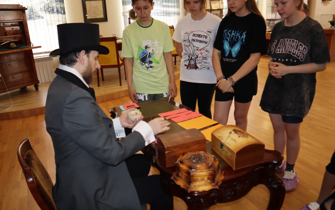 Специалисты по просветительской работе Пензенского литературного музея, облаченные в костюмы на манер XIX-XX веков, провели для пензенских пятиклассников квест-экскурсию «В путешествие с классиками».