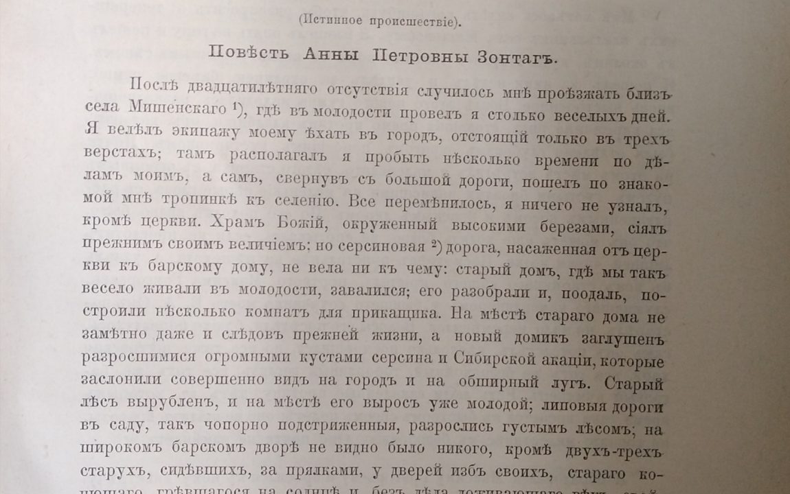 На фото: повесть Анны Зонтаг «Путешествие в Луну (Истинное происшествие)»– в журнале «Русский архив» (№12 1904 год) из фондового собрания Государственного музея-усадьбы В.Г. Белинского.