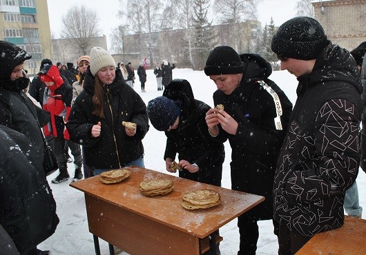 Студенты приняли участие в конкурсе пословиц и поговорок о блинах и Масленице, посоревновались в отгадывании загадок. А также, поучаствовали в игре «Испечь блин», где команда девушек и парней состязалась на ловкость и меткость, в «Петушиных боях» девицы высматривали самого удалого молодца, а «Блиноеды» на скорость поедали блины по особому радищевскому рецепту, в отгадывание круп определили лучших хозяек.