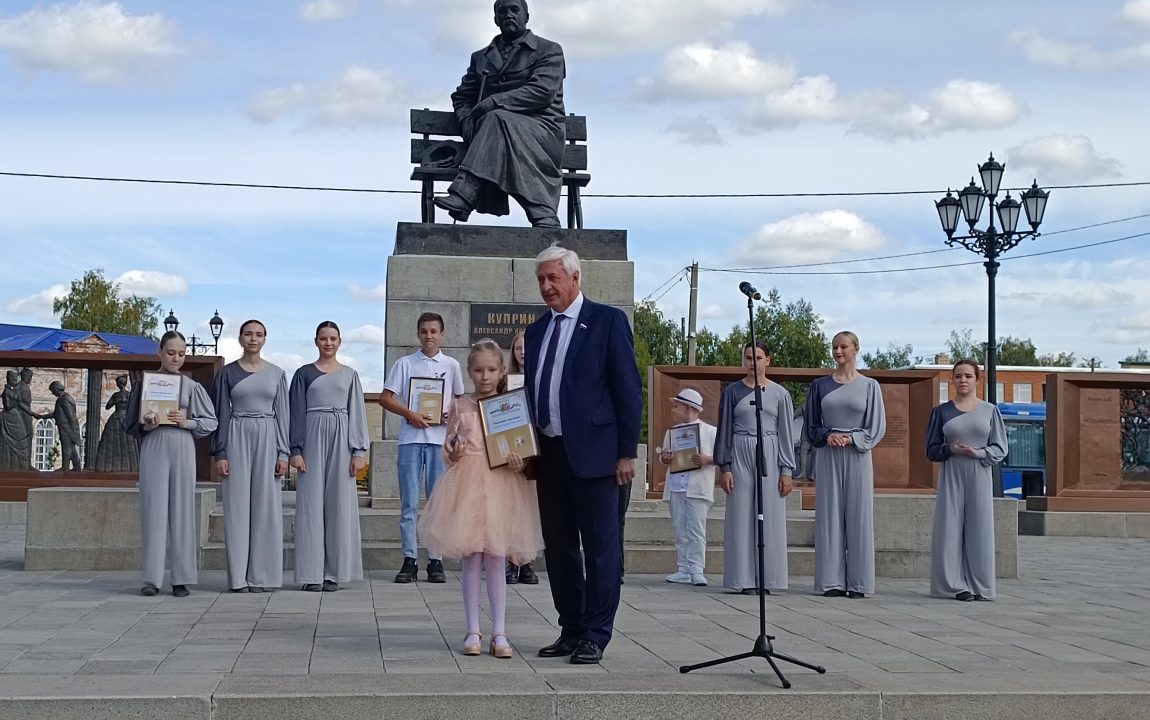 Депутат законодательного собрания Александр Ломовцев поделился, что принято решение учредить премию юным дарованиям «Хрустальное яблоко» и вручил дипломы и призы детям, принимавшим участие в организации и проведении Купринского литературного праздника.
