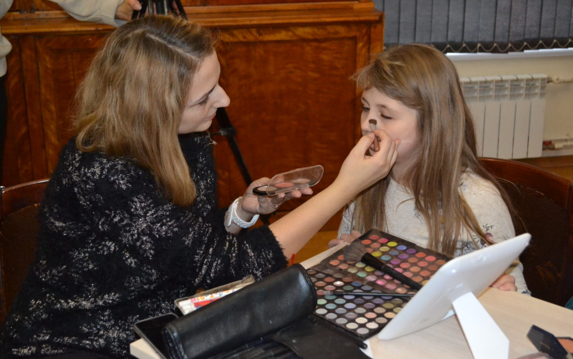 3 декабря финалисты IV Международного конкурса чтецов «Слова подобны крыльям» посетили мастер-класс по сценическому гриму. Занятие в Пензенском литературном музее провела гример-постижёр Пензенского областного драматического театра им. А.В. Луначарского Вера Горбачова. Специалист, профессионально меняющий образ актёров, рассказала конкурсантам об основах сценического макияжа и научила правильно корректировать формы лица, используя косметику и кисточки. Ребята пробовали придать скулам рельефность с помощью теней и света, сделать глаза и губы выразительнее, узнали разницу между женским и мужским макияжем. Одни ребята рисовали «новое лицо» себе, другие — своим близким, которые пришли поддержать юных артистов. Руки у начинающих гримеров предательски дрожали, но мастерство наставника быстро исправляло ситуацию.