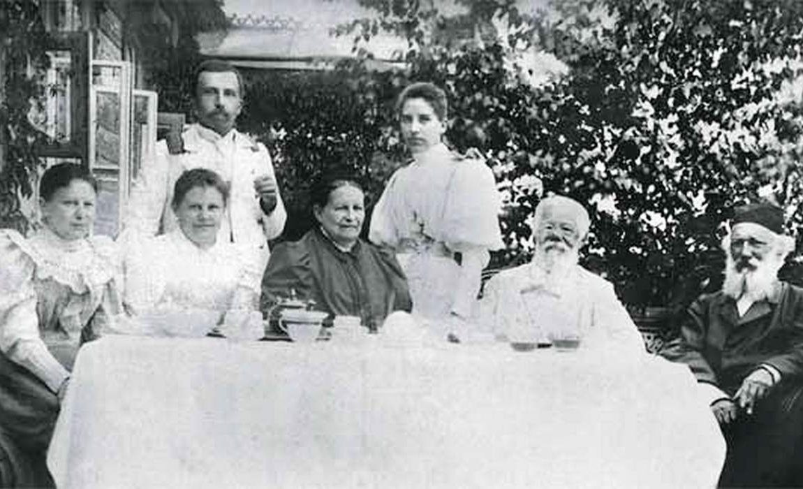 Фото 3: за столом в саду имения Урлейка. Стоят: Н.М.Енишерлов, Н.А.Бекетова; сидят: В.С.Бекетова(Ермолаева) — в центре, А.Н.Бекетов, Н.Н.Бекетов.1880-е г.г.
