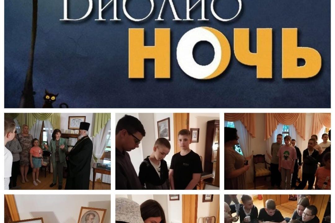 Дети познакомились с книжной выставкой «Удивительный мир книг». Побывавший на библионочи настоятель Белинской Покровской церкви протоиерей Георгий обратил внимание на «Сказку о Еруслане Лазаревиче» в старой орфографии, другие книги круга детского чтения Белинского, в том числе «Жизнь и приключения Робинзона Крузо, природного англичанина», которая доставила ему «столько чистейшего и упоительнейшего наслаждения».