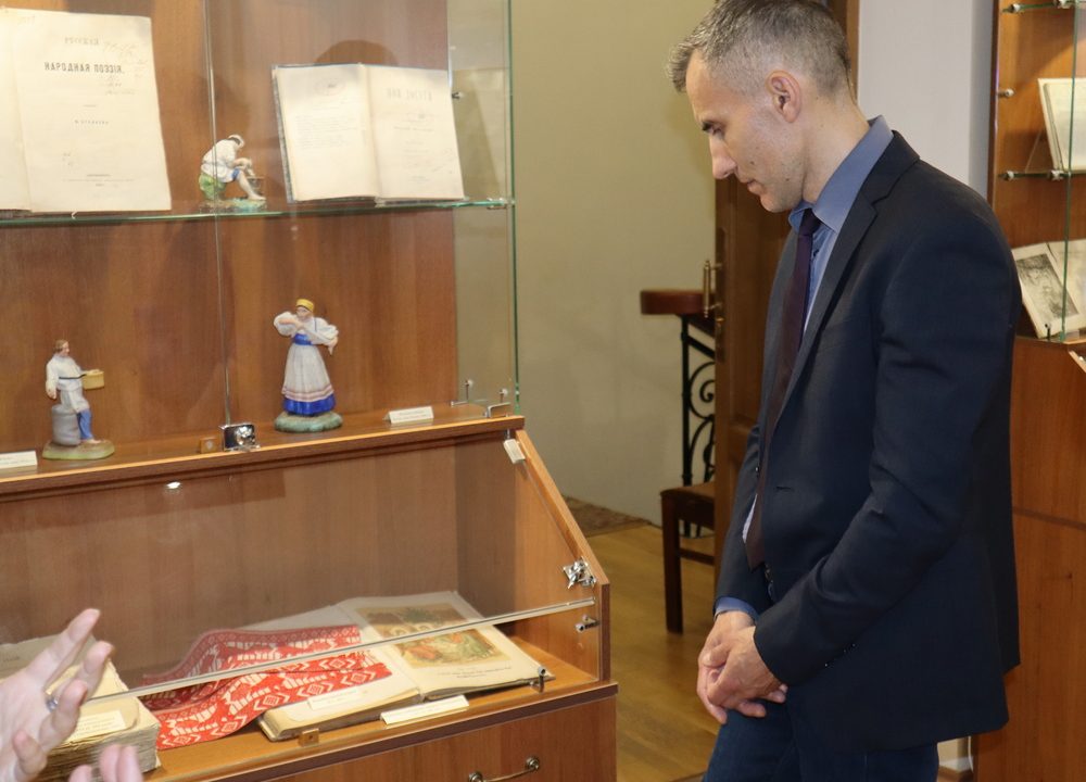 Заведующая музеем «Спасенные художественные ценности» Ирина Тарима и заведующий «Художественным музеем» Юрий Хведынич посетили основную экспозицию «Пензенская земля – русской литературе», в том числе, зал «От Блока до блога». Они с интересом окунулись в мир книг, рукописей, старинных гравюр и бытовых предметов, без которых не мыслился уклад жизни русского писателя XIX века. Более всего коллег заинтересовали художественные работы Литературного музея.