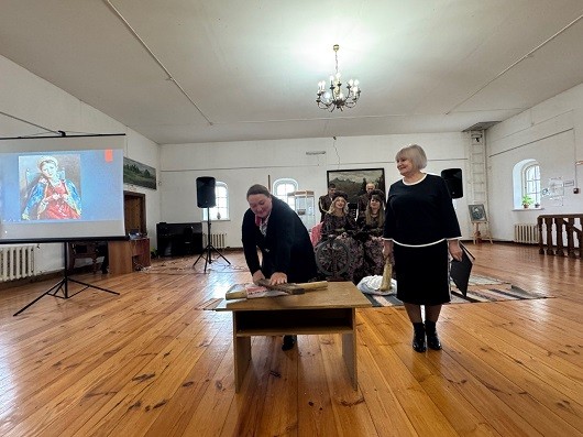 Участникам мероприятия специалисты музея поведали о жизни и быте аблязовских и илимских крестьянок XVIII века. Женщины познакомились с предметами крестьянского быта того времени, узнали, как применялся «валёк» в хозяйстве, а также проявили свои навыки в глажке холста рубелем.