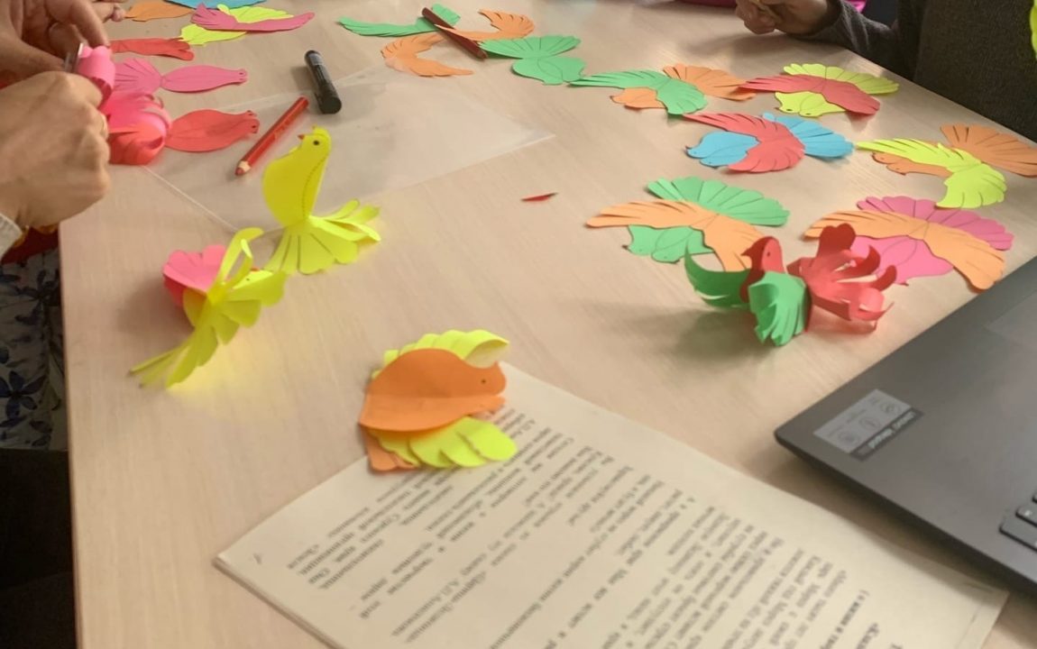 Дети «приоткрыли дверь» в удивительный мир творчества Александры Петровны Анисимовой — пензенской писательницы, сказительницы, собирательницы фольклора Сурского края. Они играли в народные игры, разгадывали затейливые загадки и, затаив дыхание, слушали сказочную историю про Птицу — Радость, а затем сами смастерили ярких, чудесных птичек. Получилось солнечно и радостно!