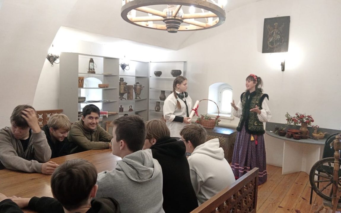 В увлекательное путешествие школьники отправились вместе со специалистами музея в образах Фаины и Марии — сестер Александра Николаевича Радищева. Нарядные барышни рассказали своим гостям о традициях дворянской семьи и местном укладе, а ключница Акулина поведала о быте и жизни крестьян.