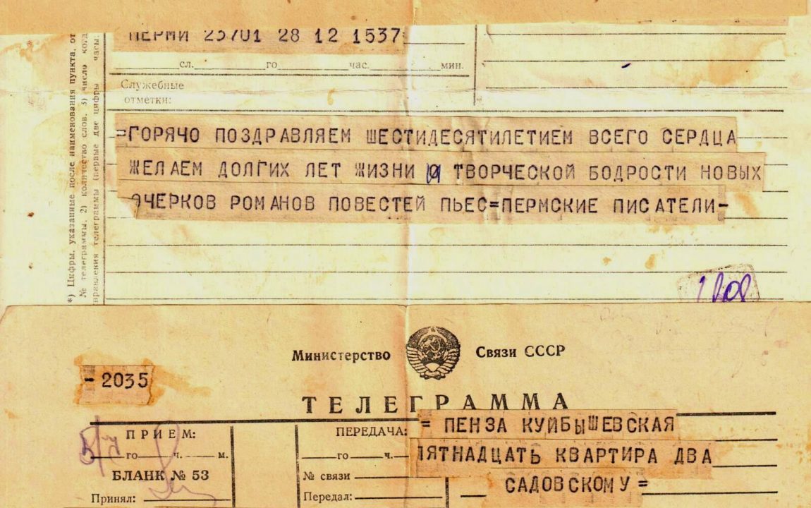 Кроме книг, музейные сотрудники получили переписку писателя с издателями, личные документы, пишущую машинку Smith Premier, на которой много лет работал Владимир Лаврентьевич. Самые ценные материалы в литературном архиве Садовского-это рукописные и машинописные тексты произведений с авторской правкой Владимира Лаврентьевича, иллюстрирующие процесс литературного творчества.