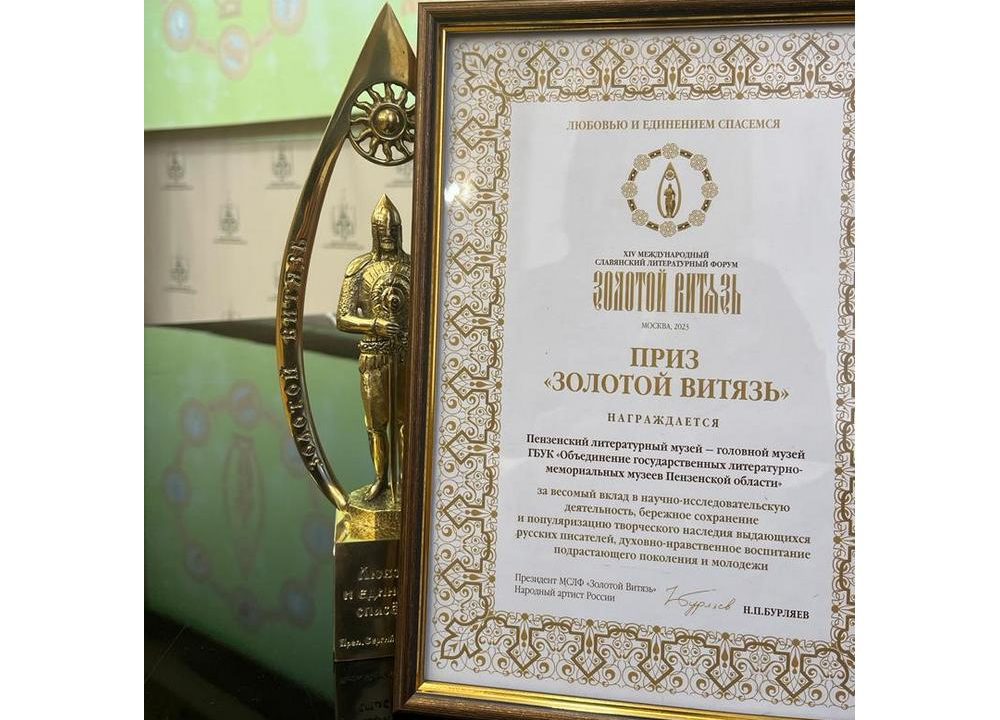 В 2023 году состоялся XIV Международный Славянский Форум Искусств, по итогам которого Пензенскому литературному музею – головному музею ГБУК «Объединение государственных литературно-мемориальных музеев Пензенской области» – присуждена статуэтка «Золотой витязь» за весомый вклад в научно-исследовательскую деятельность, бережное сохранение и популяризацию творческого наследия выдающихся русских писателей, духовно-нравственное воспитание подрастающего поколения и молодежи.