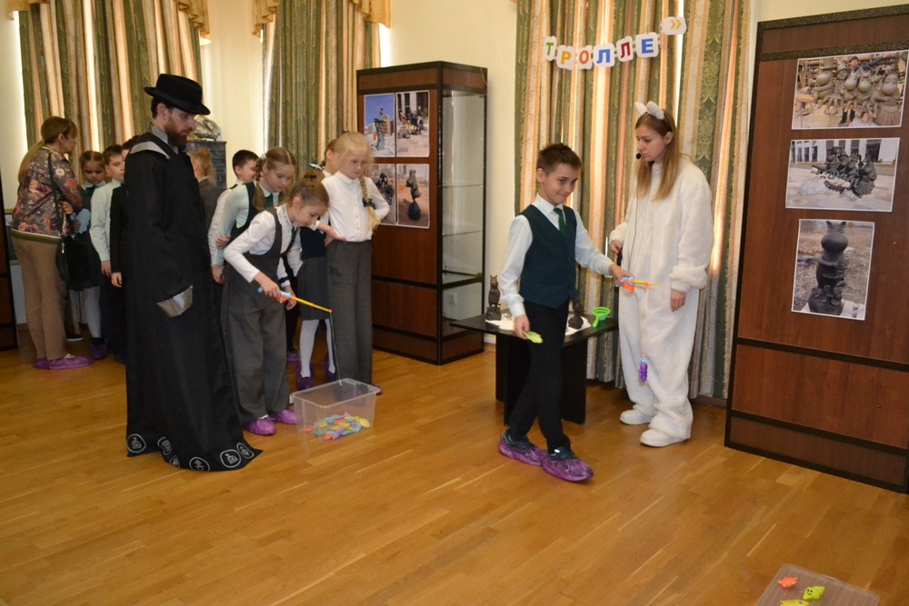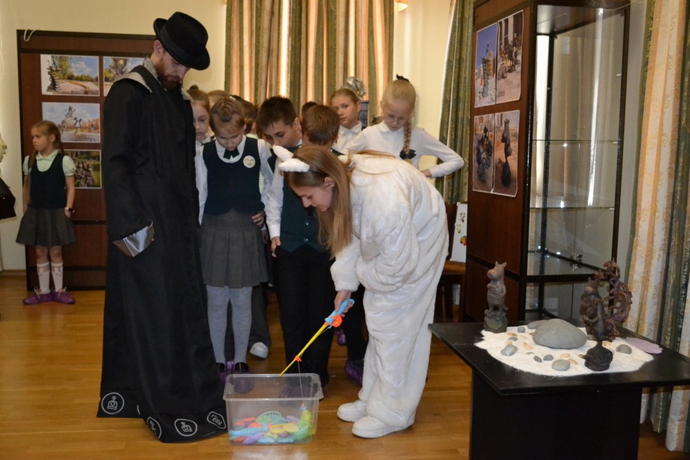 Специалисты музея поздравили именинников, рассказали о значении их имен, вручили памятные подарки от одноклассников и направились на экскурсию-экспедицию по выставке скульптур.