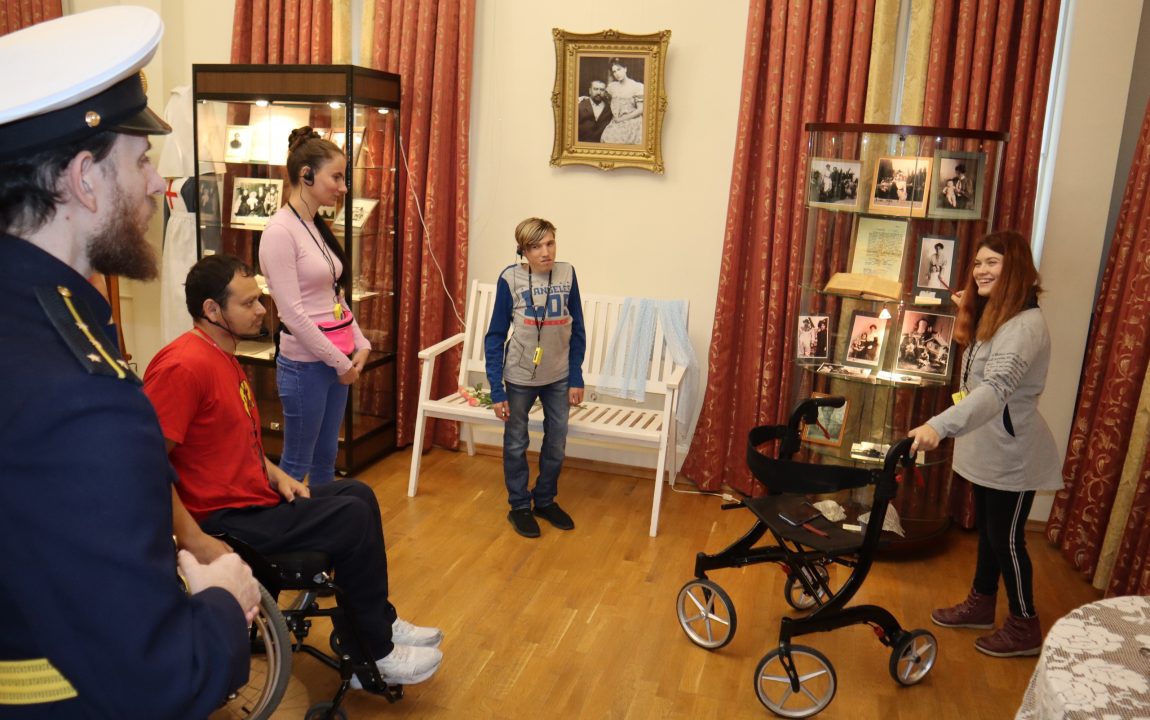 Молодые люди, прошедшие профильную подготовку, выступили в качестве инклюзивных гидов по принципу «равный-равному» на выставке «Жена писателя, сестра милосердия, душа эмиграции».