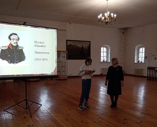 Посетители совершили виртуальное путешествие по лермонтовским местам. Ребята узнали много интересного о поэте и его бабушке Елизавете Алексеевне Арсеньевой, у которой он жил и воспитывался. Оказывается, Михаил Юрьевич с самого раннего детства прекрасно рисовал и сочинял стихи. Проводя в «Тарханах» детские годы, он навсегда полюбил красоту родной природы. Сама усадьба, жизненный уклад, люди, которые гостили здесь, их разговоры и рассказы, крестьяне, работавшие в усадьбе — все это нашло отклик в творчестве М.Ю. Лермонтова. Во время мероприятия звучали стихи земляка в исполнении школьников.
