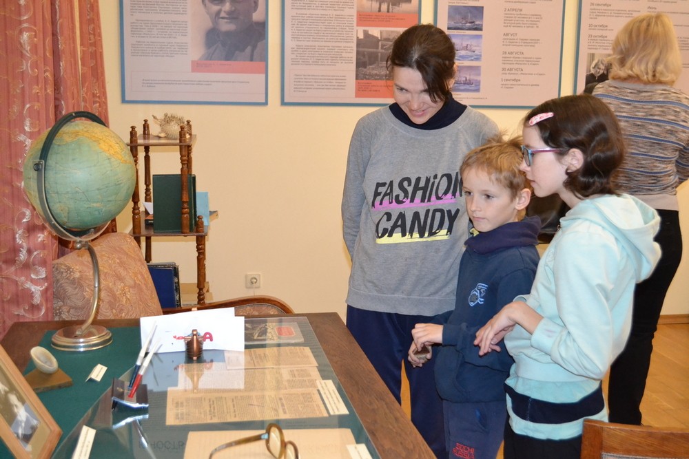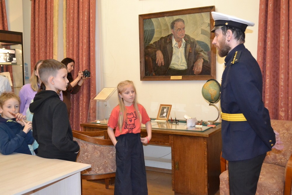 На интерактивном занятии «На морских дорогах», прошедшем на выставке «Одиссея длиною в жизнь», участникам просветительской акции рассказали о Герое Советского Союза, ледовом капитане, писателе-земляке К.С.Бадигине. Посетители прошли «морскими дорогами» и разгадали ребусы, спрятанные в «корабликах».