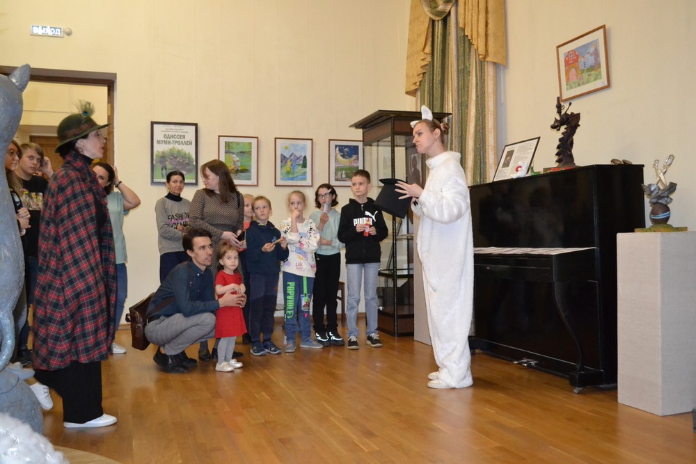 Большой ажиотаж и у детей, и у взрослых вызвала «Прогулка по Мумидолу: до облаков и обратно» — занятие-экспедиция по новой выставке скульптур персонажей сказок про Муми-Троллей скульптора Владимира Трулова. Дети примеряли разные образы от «волшебной шляпы», дружно разгадывали головоломки, слушали «страшные сказки» от Снусмумрика и, конечно, разыскивали большой рубин!