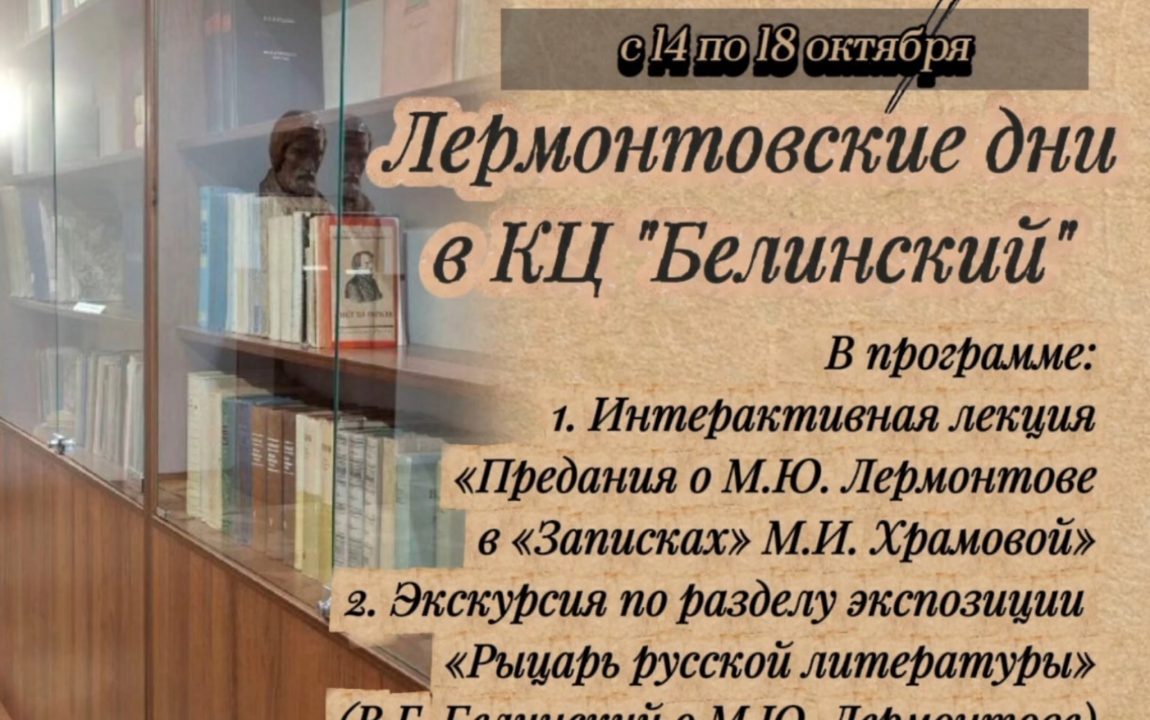 Приглашаем на Лермонтовский день в Культурном центре «Белинский».