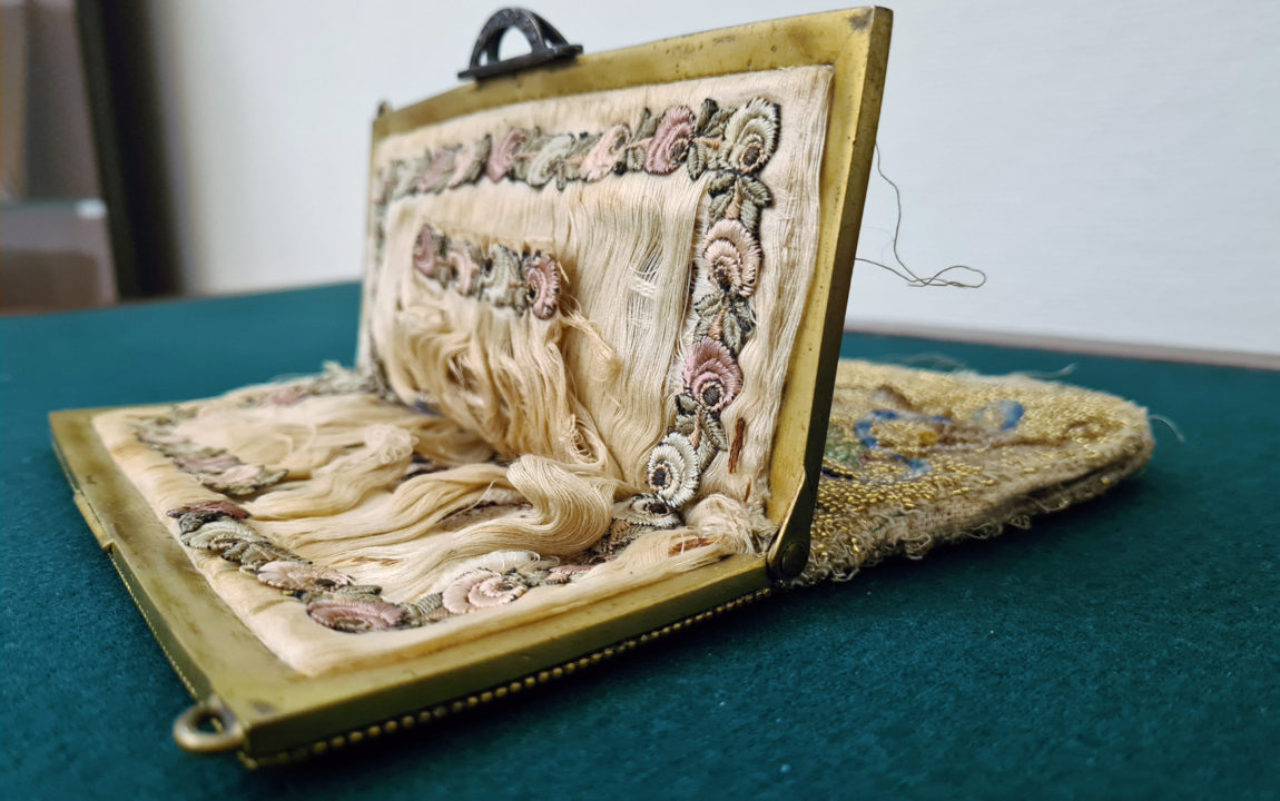 Владелица сумочки, которая передала аксессуар в музей, рассказала семейную легенду: ее прабабушка в молодости была взята в богатый дом в Санкт-Петербурге няней и так понравилась хозяйке, что та сделала ей дорогой по тем временам подарок… С тех пор семейная реликвия передавалась по женской линии.