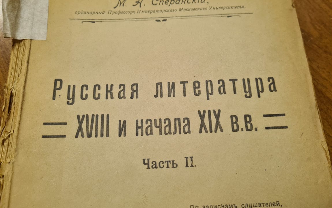 Это учебное пособие по филологии, опубликованное Обществом студентов-филологов при Императорском Московском университете. Подобные студенческие организации были развиты. Они занимались выпуском в печать лекций. Переданная книга как раз является сборником записок слушателей, выпущенная под редакцией профессора Московского университета Михаила Сперанского – тёзки видного политического деятеля России XIX века.