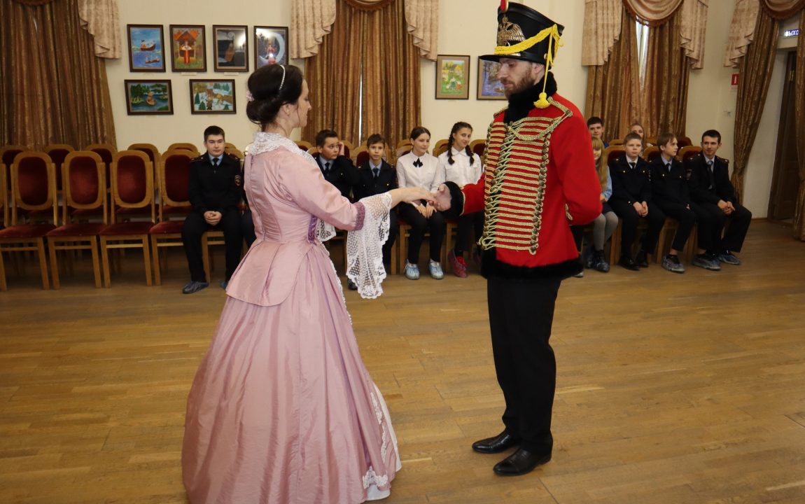 14 октября для ребят из кадетского касса МБОУ СОШ №11 прошла театрализованная программа «Писатели на защите Отечества. Пером и шпагой». Стойкий оловянный Солдатик и прелестная Балерина рассказали восьмиклассникам об основных армейских символах, познакомили гостей с биографиями писателей — участников различный войн XIX и ХХ веков, провели занимательную викторину.