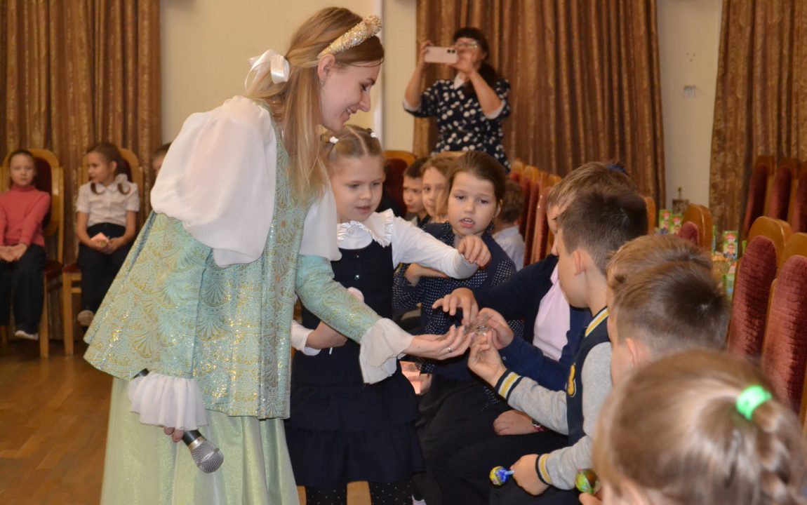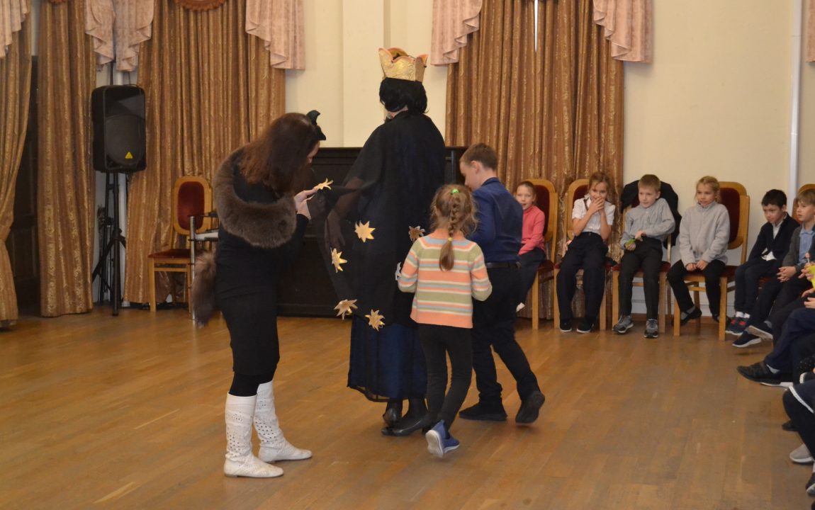 О значении имен гостям рассказала Василиса Премудрая, а Кошка Баюшка преподнесла именинникам сладкие подарки. Перед долгожданным чаепитием школьники с удовольствием приняли участие в дефиле сказочных героев. Им даже удалось задобрить Злую Волшебницу, усеяв «звёздами» ее плащ, а она за это прокатила их на волшебной карусели.