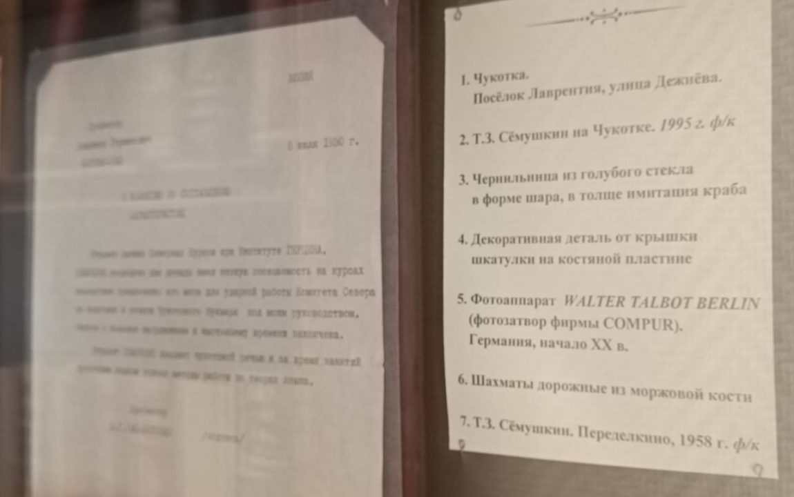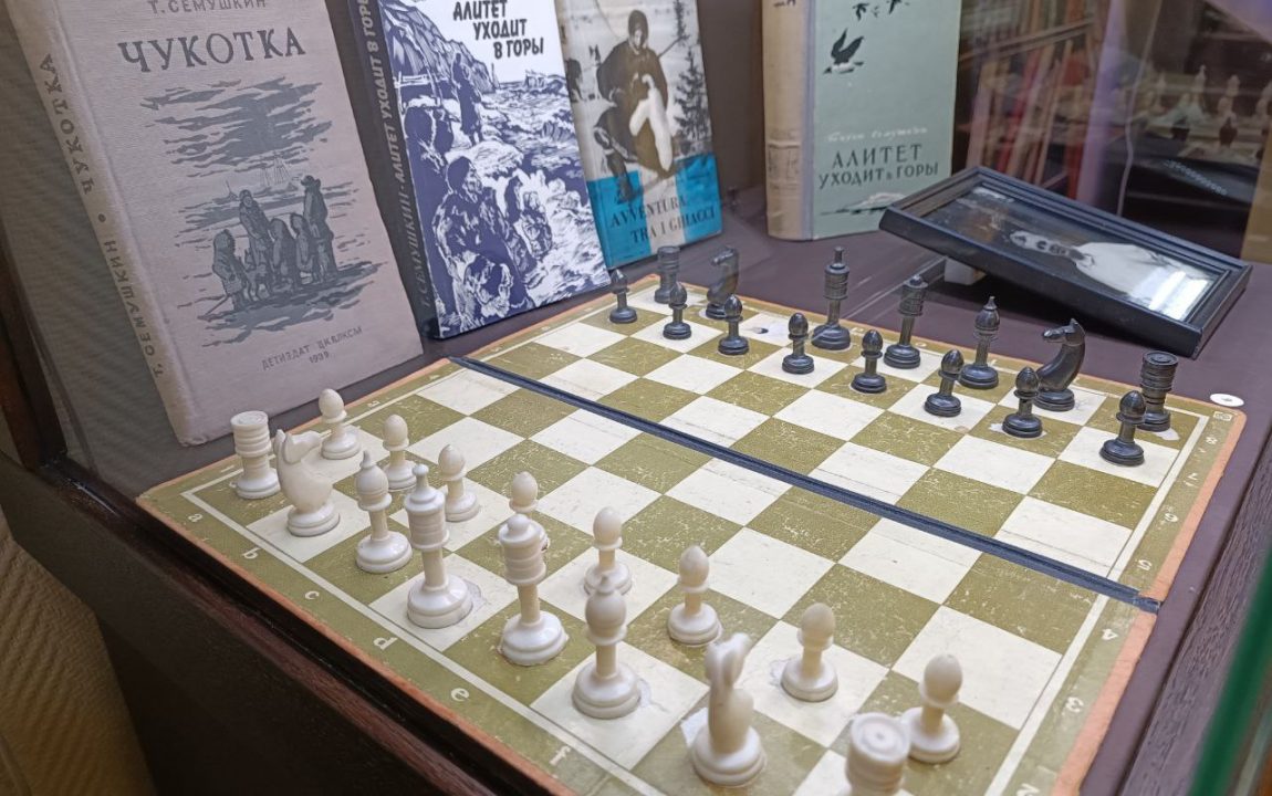 Среди мемориальных вещей Тихона Захаровича Семушкина, представленных в витрине Литературного музея, чернильница-«непроливайка» из голубого стекла в форме шара и дорожные шахматы из моржовой кости. Лишь самые внимательные экскурсанты увидят, что на шахматной доске не хватает одной фигуры.