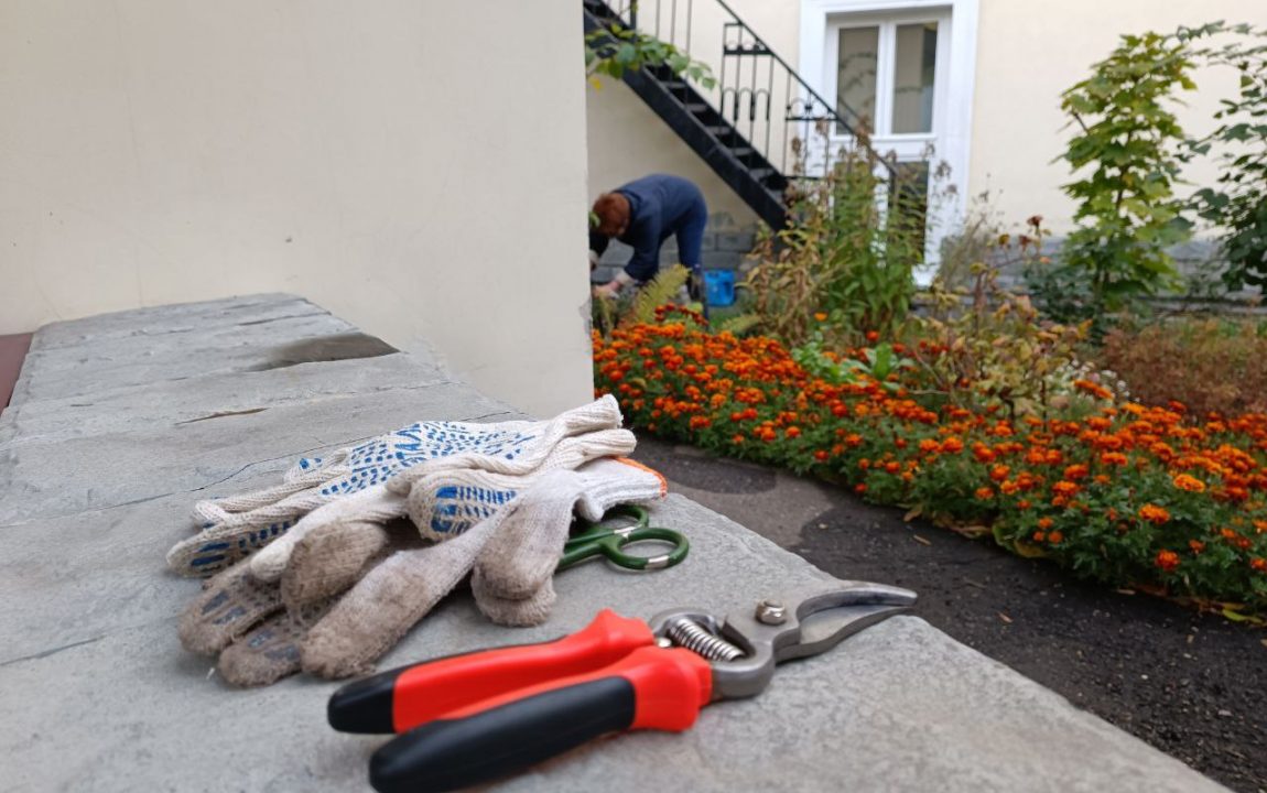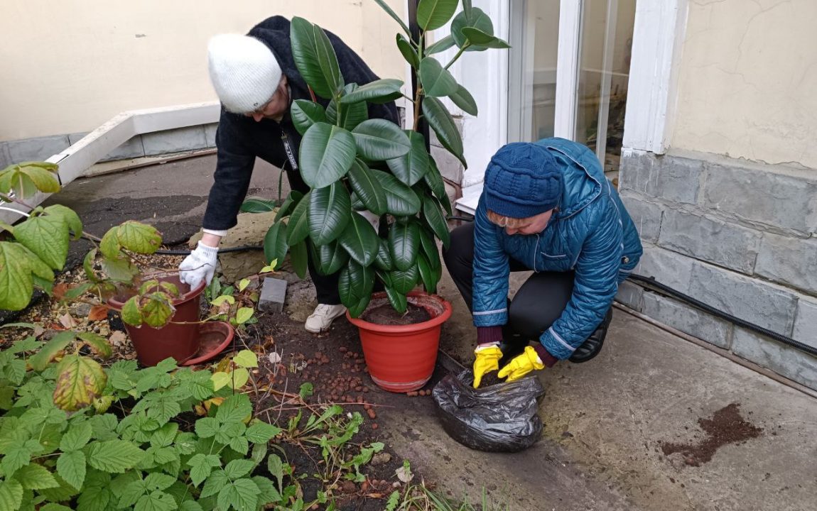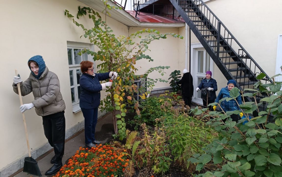 Территория музеев очищена от мусора и сухих листьев, произведена обрезка деревьев, пересажены на зимовку цветы.
