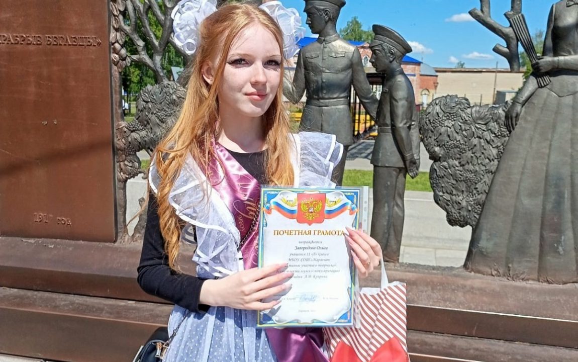 На линейке, посвященной окончанию учебного года в МБОУ СОШ с.Наровчат, заведующая музеем А.И.Куприна наградила ребят из творческой группы «Олеся». Также Почетная грамота и памятный подарок были вручены выпускнице школы Загородовой Ольге на последнем звонке.