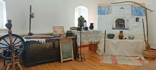 Выставка включает в себя множество экспонатов, среди которых можно увидеть традиционные орудия труда, кухонную утварь, осветительные приборы, а также предметы домашнего обихода.