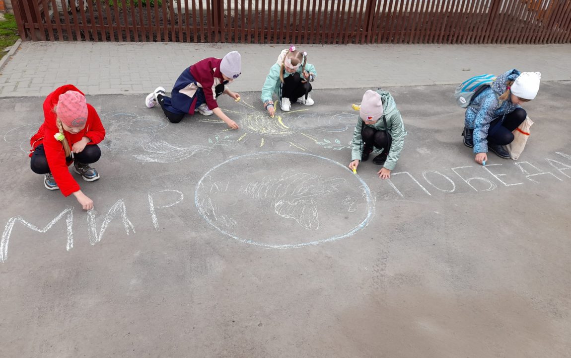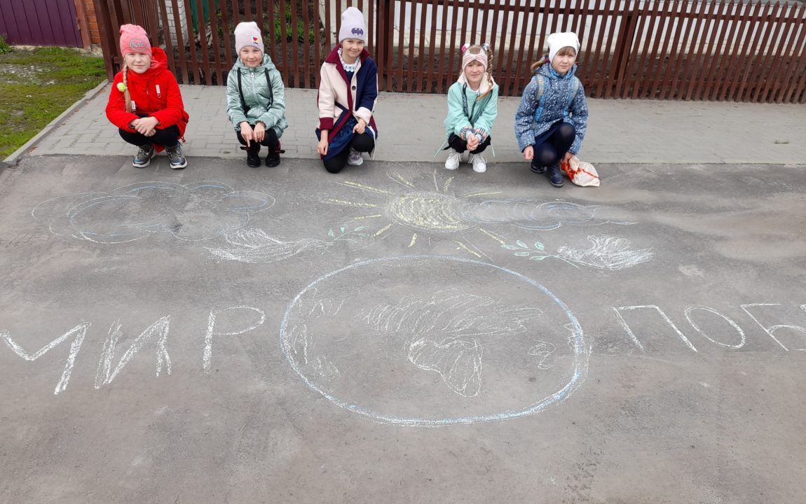 Принимая участие в акции и создавая цветными мелками рисунки на асфальте, дети выразили свою благодарность ветеранам за мирное небо над головой, за то, что отстояли Родину в годы Великой Отечественной войны.