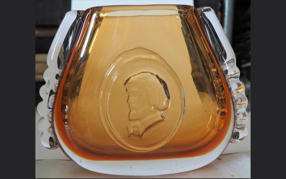 В год 210-летия со дня рождения В.Г.Белинского музею передали предметы советского времени, которые имеют непосредственное отношение к В.Г.Белинскому. Друг учреждения – неистовый исследователь старины, Александр Шилин из Пензы подарил стеклянную вазу из домашней коллекции с изображением В.Г.Белинского. Маленькая, высотой всего 13 см, она весит 1232 грамма! Вес ей придает толстое стекло, из которого она изготовлена. Еще один солидный по весу предмет подарила музею его сотрудник Татьяна Дюкова. Это сувенир – бумагодержатель, пресс из толстого прозрачного стекла. Его вес почти килограмм (979 гр.), а размер 15* 10. Но самое важное — этот предмет тоже с изображением В.Г. Белинского.
