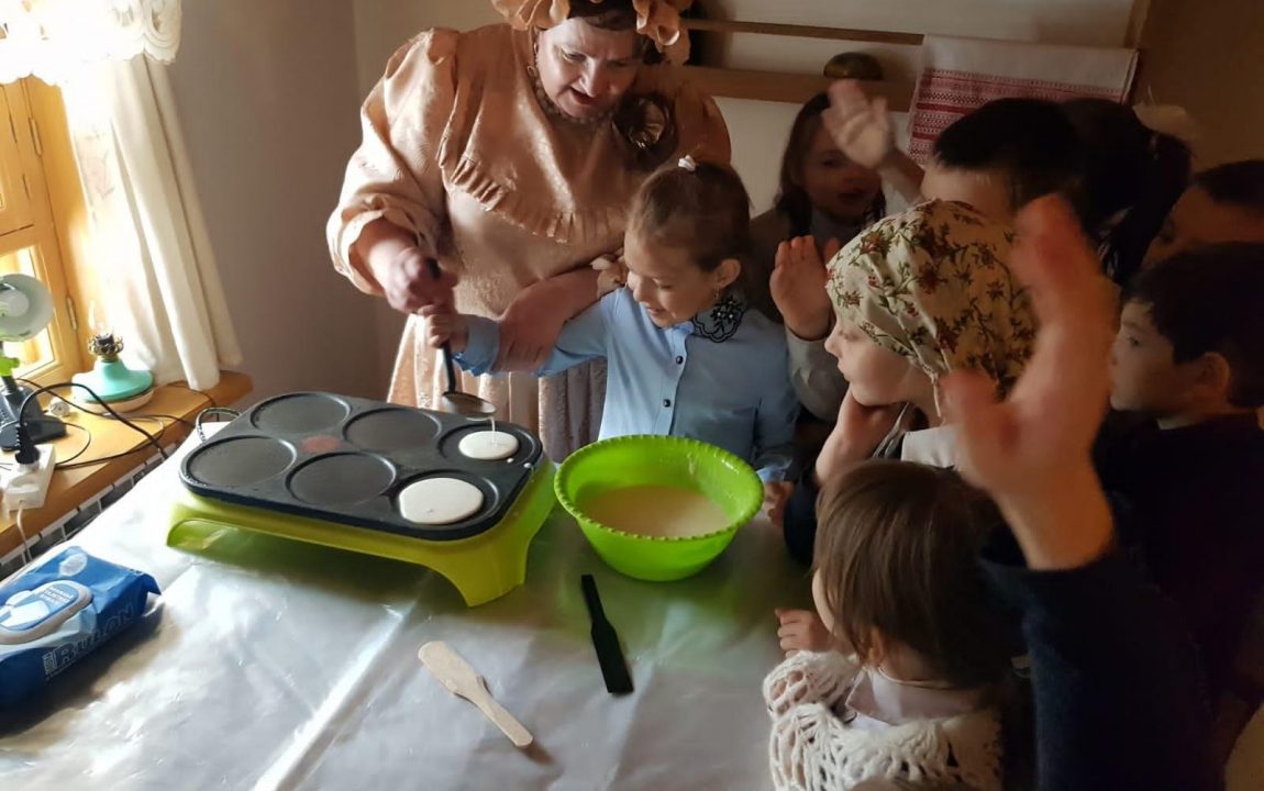 Все премудрости работ по дому ребята знают! И как приятно видеть, что мальчики в ловкости и умении, желании помогать не уступают девочкам. Настоящие мужчины умеют и постирать, и белье погладить, и обед приготовить, и , конечно, попробовать приготовленное своими руками «солнечное угощение предков» — блины. А все вместе ребята в музее учатся управлять домом, помогать старшим, быть Хозяевами и Хозяюшками.