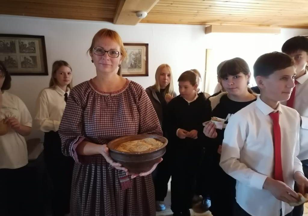 В образе Марии Ивановны «выступила» экскурсовод музея Светлана Артюшина, ее старшей дочери Александры — научный сотрудник Любовь Руднева. Для детей был проведен мастер-класс по выпечке блинов по старинным рецептам.