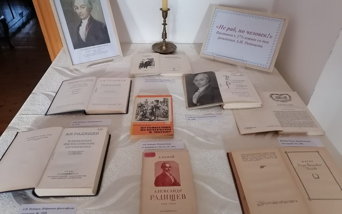 В музее В.Г. Белинского к 275-летию А.Н. Радищева открыта выставка «Не раб, но человек!». На ней представлены экспонаты, рассказывающие об авторе известного всем «Путешествия из Петербурга в Москву» — писателе, прозаике, философе и поэте.