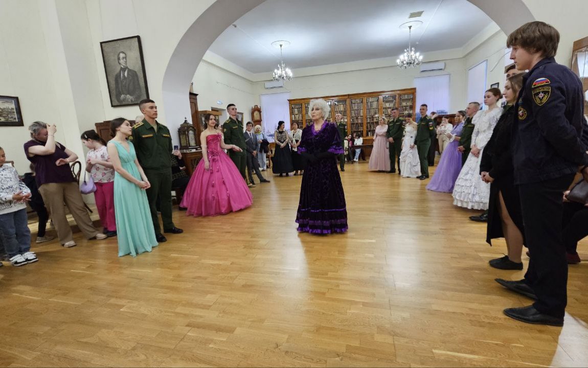 После интеллектуальной части вечера, на основной экспозиции посетителей ожидало более энергичное продолжение — литературный «Бал поколений», где они окунулись в атмосферу 19-20 вв., узнали о «традициях собирать всех дворян для разговоров, танцев галантных и музыки» и, конечно, разучили несколько популярных бальных танцев начала 20-го столетия.