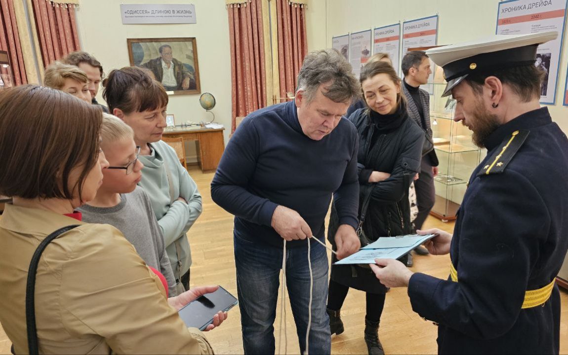 Также в течение вечера в конференц-зале участники акции активно участвовали в интерактивной программе «По морским дорогам», посвященной Герою Советского Союза, ледовому капитану, писателю-земляку Константину Сергеевичу Бадигину. Они «прошли» морскими дорогами под уверенным руководством специалиста отдела по культурно-просветительской работе Михаила Клевицкого, узнали, что такое рында и даже попробовали в неё позвонить, а в завершение программы прочитали засекреченное послание капитана.