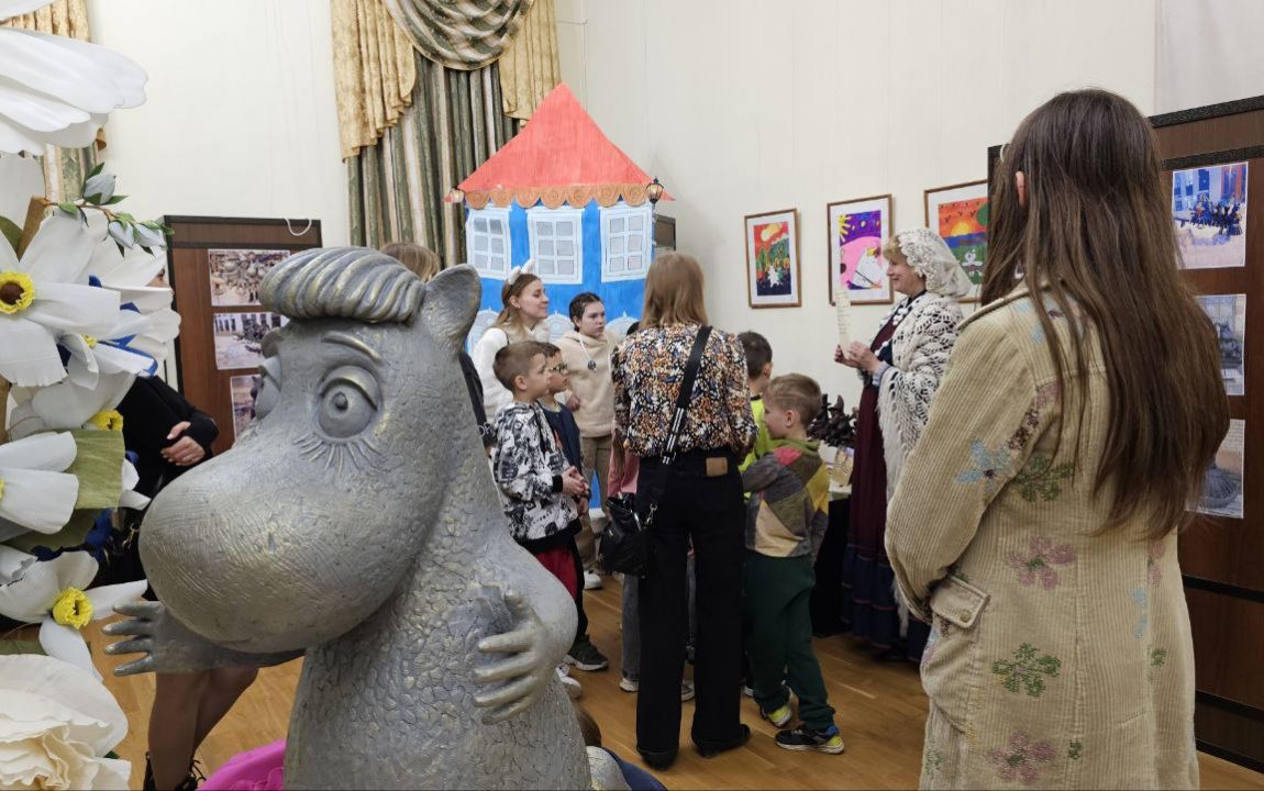 На выставке скульптур персонажей сказок про муми-троллей скульптора Владимира Трулова «Одиссея Муми-Троллей» каждый час проходило веселое детское занятие-экспедиция «Прогулка по Мумидолу: до облаков и обратно». Малыши с удовольствием прошли со специалистом отдела по культурно-просветительской работе Екатериной Звягинцевой предложенным маршрутом, на котором услышали «страшные сказки», собрали гербарий, разобрались с лабиринтом и ребусами, разыскали сказочно красивый и волшебный красный рубин волшебника.