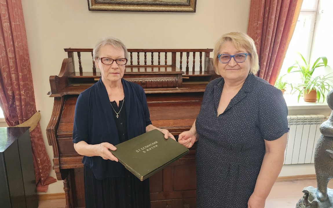 Моисеева Нина Михайловна преподнесла в дар альбом-выставку «В.Г.Белинский в жизни», серию рисунков Б.И.Лебедева, вышедшую в 1948 году в Пензенском областном издательстве. Пензенский художник несколько лет своей работы затратил на создание своеобразного памятника славе и гордости нашего региона -Белинскому.