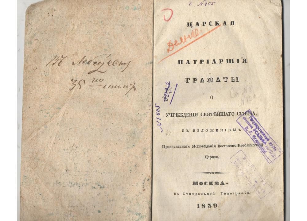 Книга «Царские патриаршие грамоты о учреждении Святейшего Синода, с изложением Православного Исповедания Восточно-Кафолической церкви» (Москва: в Синодальной типографии, 1839) есть печать «Священник о. Николай Прозоров». Предмет поступил в музей В.Г. Белинского из библиотеки Пензенской гимназии в 1965 году.