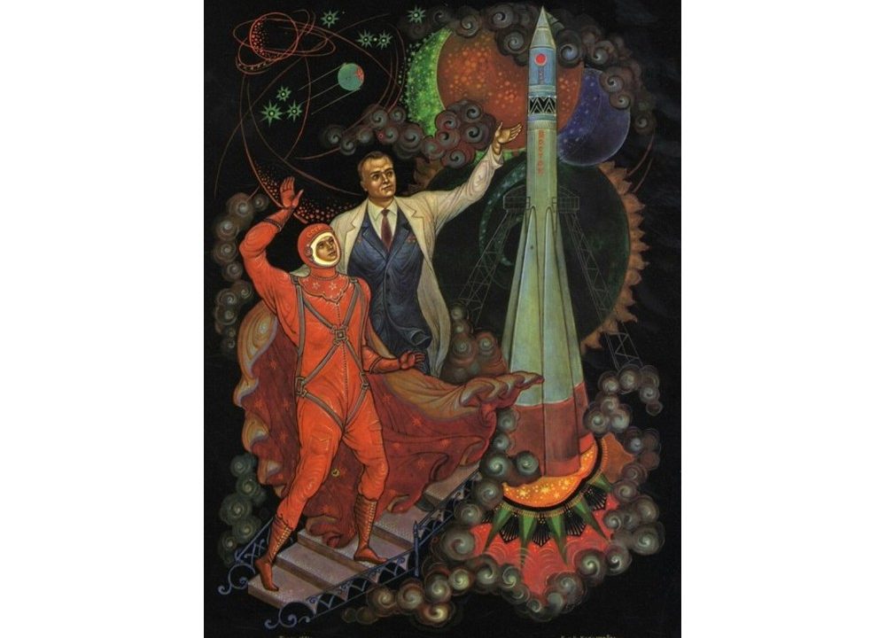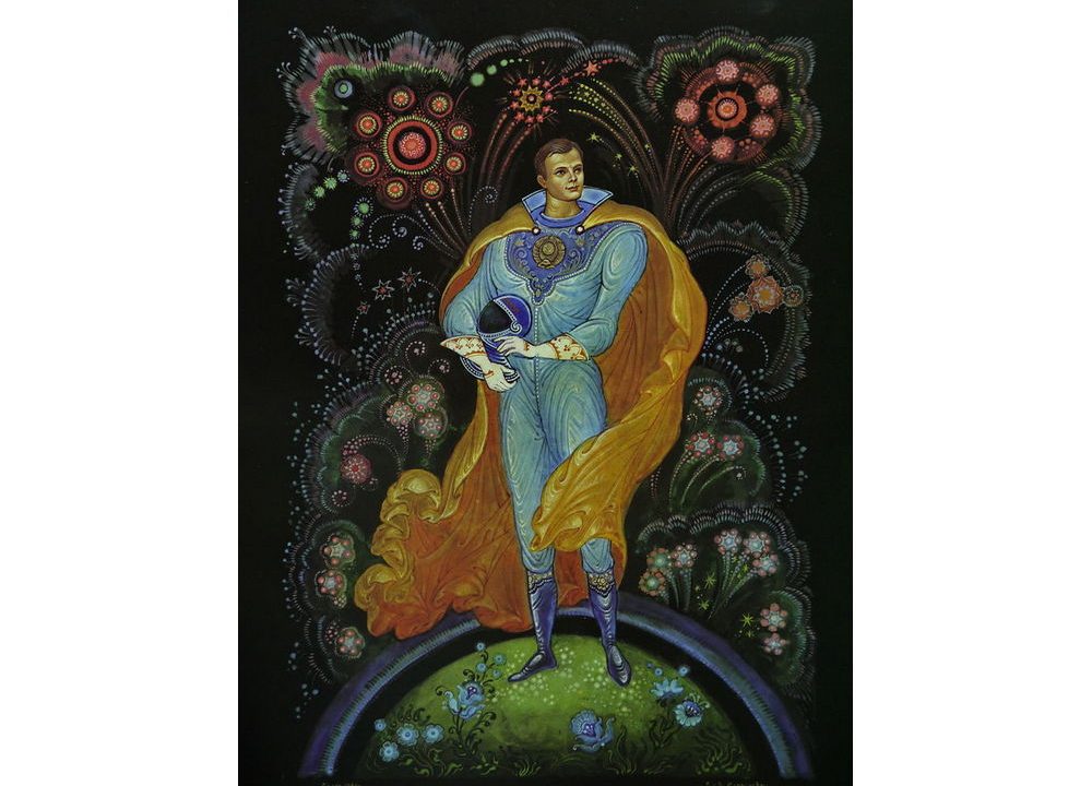 Творчество палехских художников удивительным образом сочетает в себе тему космоса и полёта Юрия Гагарина с народной традицией.