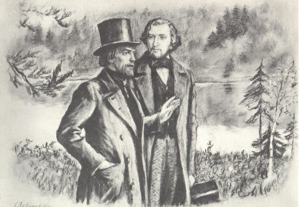 Летом 1844 года Белинский отдыхал на даче в Лесном, а Тургенев — в пяти верстах, в Парголове, и друзья встречались почти ежедневно, проводя большую часть времени в разговорах. Сначала они решали «философские вопросы о значении жизни, об отношениях людей друг к другу и к божеству, о происхождении мира, о бессмертии души». Во всех этих вопросах Тургенев был для Белинского незаменимым собеседником. Не зная ни одного иностранного языка, он многое приобретал из разговоров с друзьями, умея схватывать суть той или иной философской системы и затем развивать её, опираясь на свой талант и духовную одаренность. Тургенев только недавно вернулся из Берлина и мог передать Белинскому «самые последние и свежие выводы».