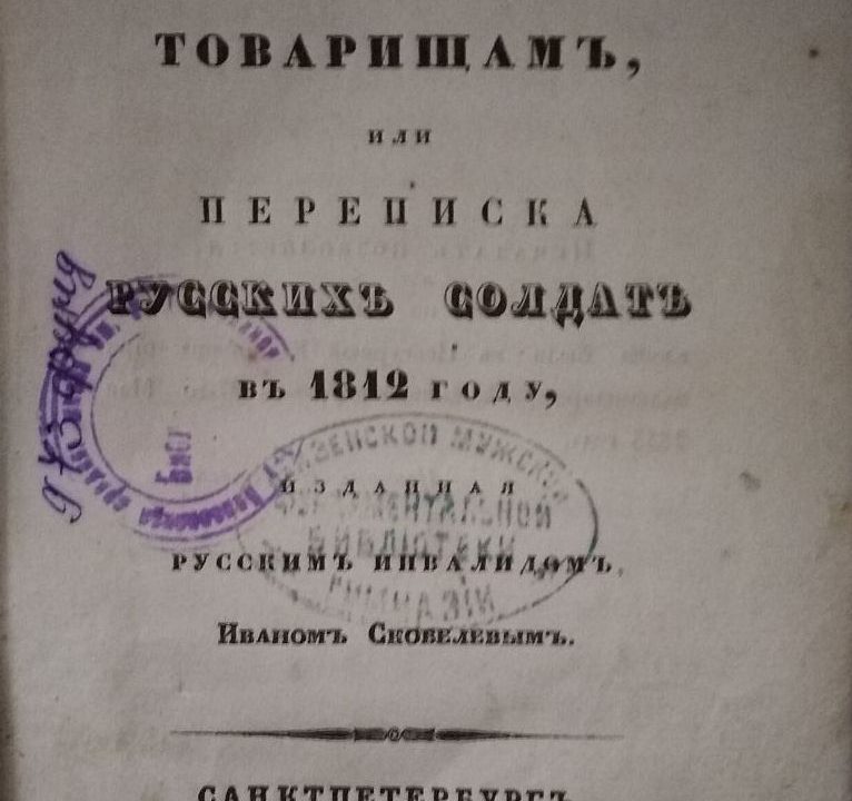 В фондах Государственного музея-усадьбы В.Г. Белинского хранится книга «Подарок товарищам, или переписка русских солдат в 1812 году, изданная русским инвалидом Иваном Скобелевым».