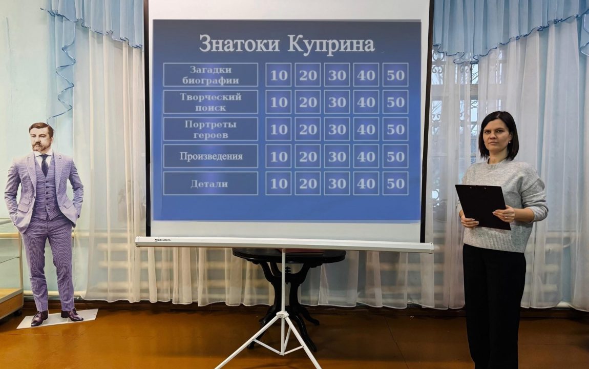Литературная игра «Знатоки Куприна» представляет собой интеллектуально-развлекательную битву. Задания включают в себя как вопросы о произведениях Александра Ивановича, так и интересные факты из его жизни и творчества. У участников игры появляется возможность освежить базовые и приобрести новые знания, а также узнать интересные подробности о великом писателе Куприне через призму увлекательных заданий.