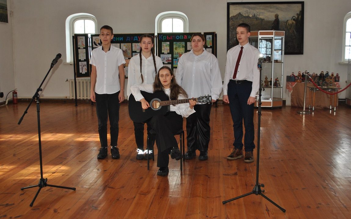 Учащиеся школы села Анненково под гитару исполнили патриотическую песню, которая тронула души присутствующих.
