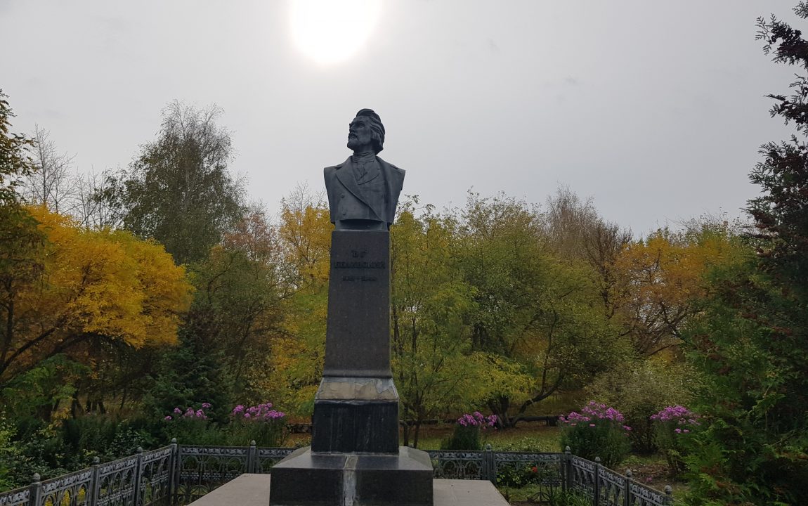 Бюст отлит из бронзы и установлен на высоком гранитном постаменте. Памятник открыт на основании Постановления Совета Министров РСФСР 5 мая 1957 года при огромном стечении народа под звуки государственного гимна.