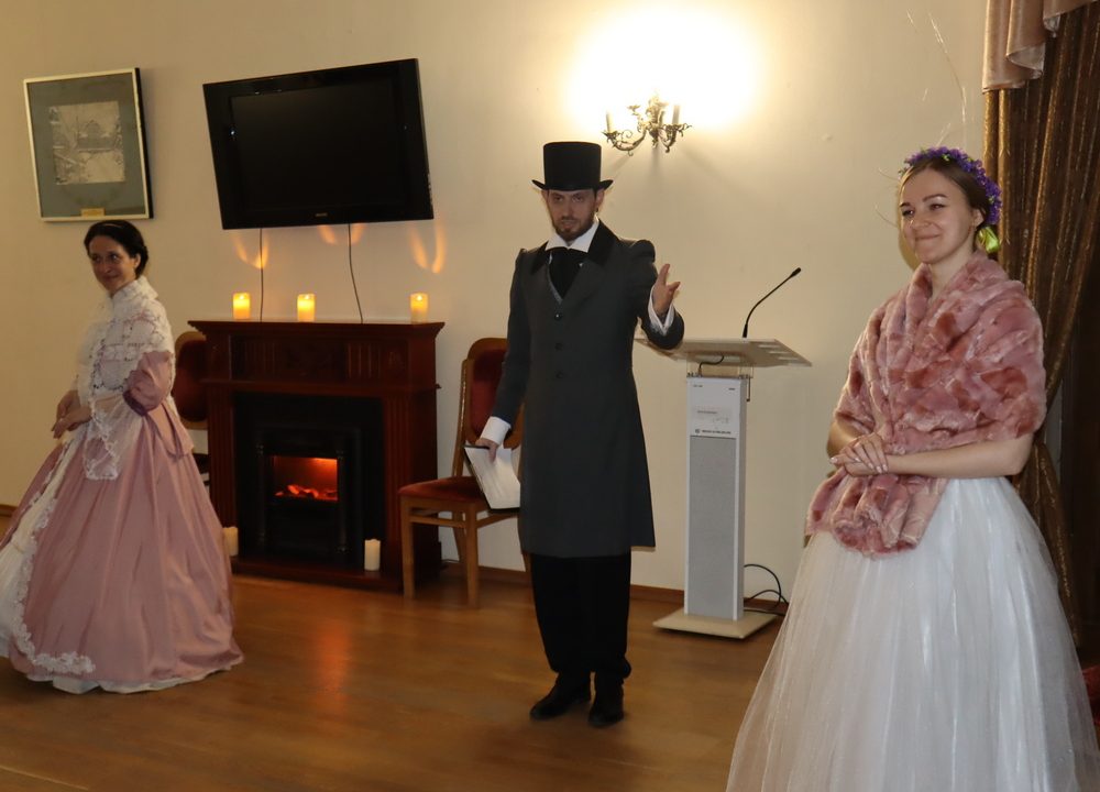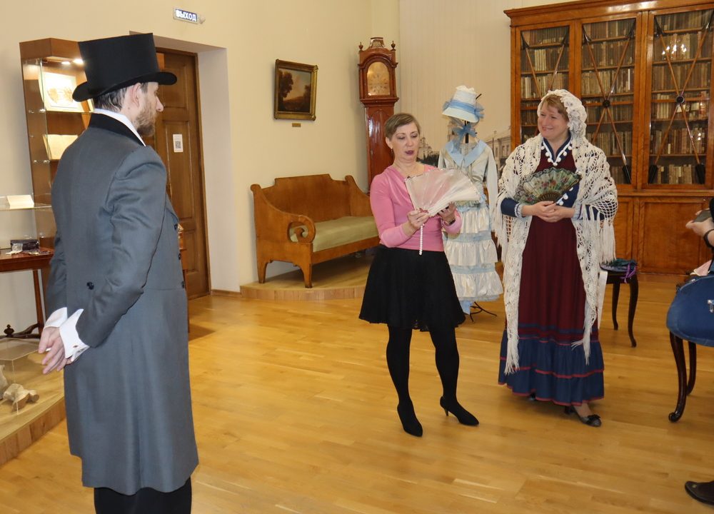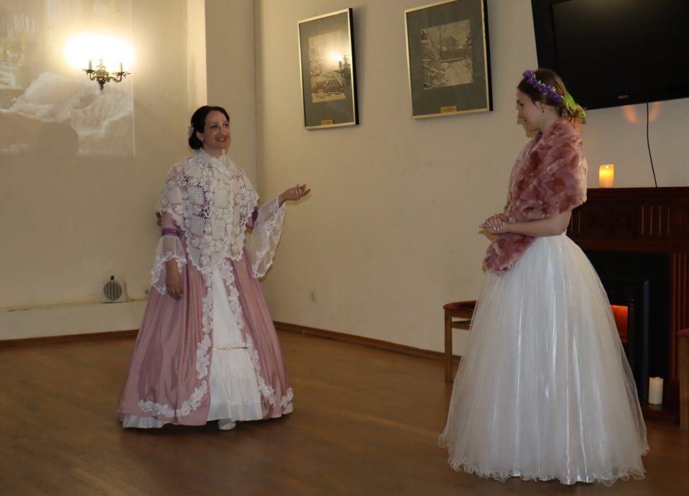 В залах Пензенского литературного музея состоялся комильфо-вечер «Уловки модниц». В преддверии Международного женского дня гостям рассказали о столовом этикете, о том, как принято вести себя дамам и кавалерам в танцевальном зале.