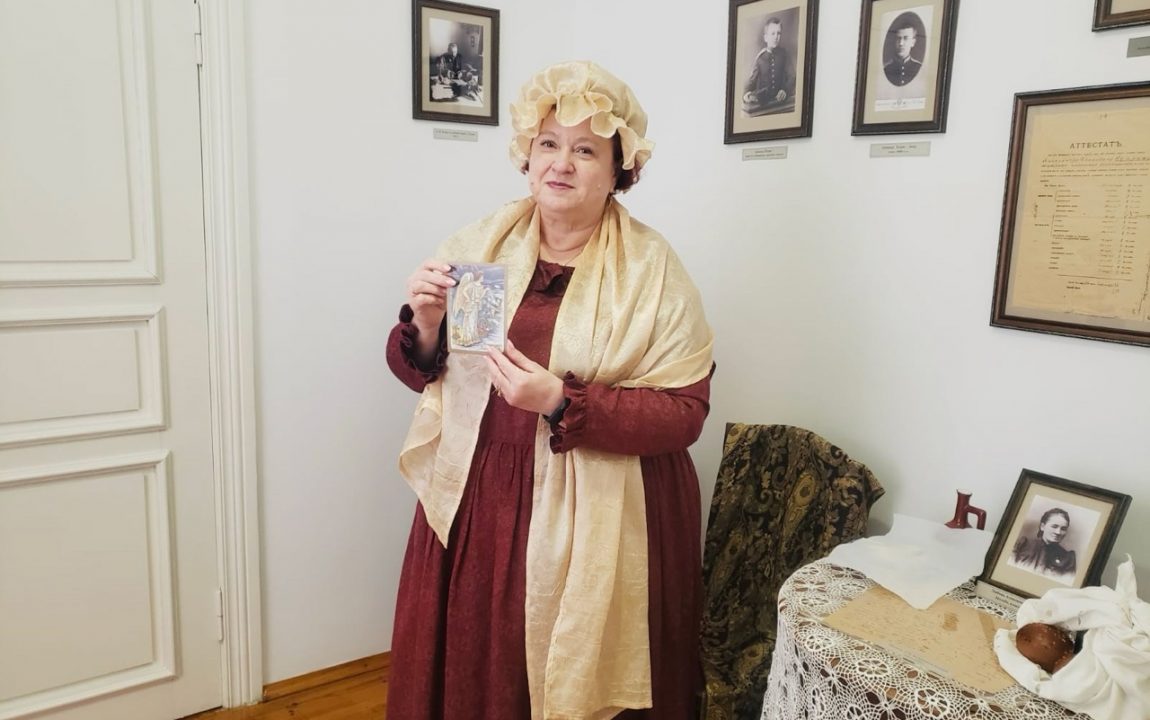 Гостей встретила матушка Александра Ивановича Куприна — Любовь Алексеевна, которая рассказала об истории и традициях праздника и о том, как праздновали Рождество в семье Куприных, как наряжали елочку.