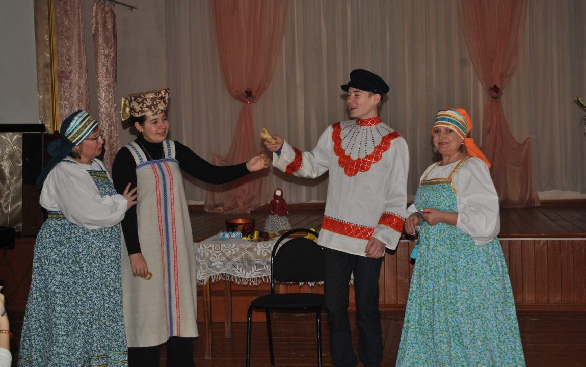 Юноши и девушки приняли участие в старинном свадебном обряде «расплетение косы», при помощи связанных между собою ложек в чаше с зерном отыскали предсказание на будущее, поиграли в старинные игры: «Зимние городки», «Шапочка», «Скамейка». Прослушав легенду о предстоящей Масленице, каждый получил пожелание на праздник.