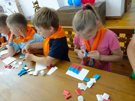 Дети познакомились с историей праздника, совершили путешествие по нашей необъятной и удивительно красивой стране — России! В ходе игры они вспомнили символы России, русские пословицы, загадки, сказки и о знаменитых людях, которые прославили нашу Родину своим трудом и творчеством, приняли участие в викторине, мастер-классе, в процессе которого школьники сделали российский флаг из бумаги и картона.