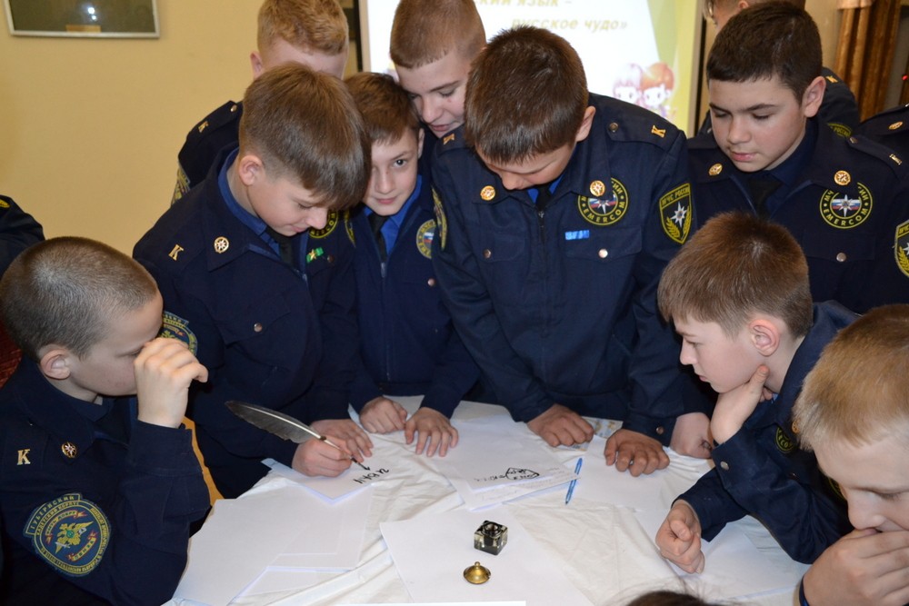 Участники мероприятия узнали «возраст» русского языка, историю славянской письменности, попытались перевести на современный русский язык предложения на древнерусском из «Повести временных лет», составили и отыскали слова в ребусах, а пословицы и поговорки — на картинках, и, наконец, нашли синонимы к старым словам, давно вышедшим из обихода. С большим интересом школьники посмотрели мультфильмы про Кирилла и Мефодия, а также о языке интернета, зачастую совмещающем разговорную и письменную речь.